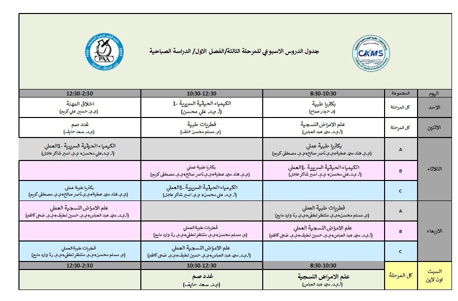 جدول المرحلة الثالثة / قسم التحليلات المرضية