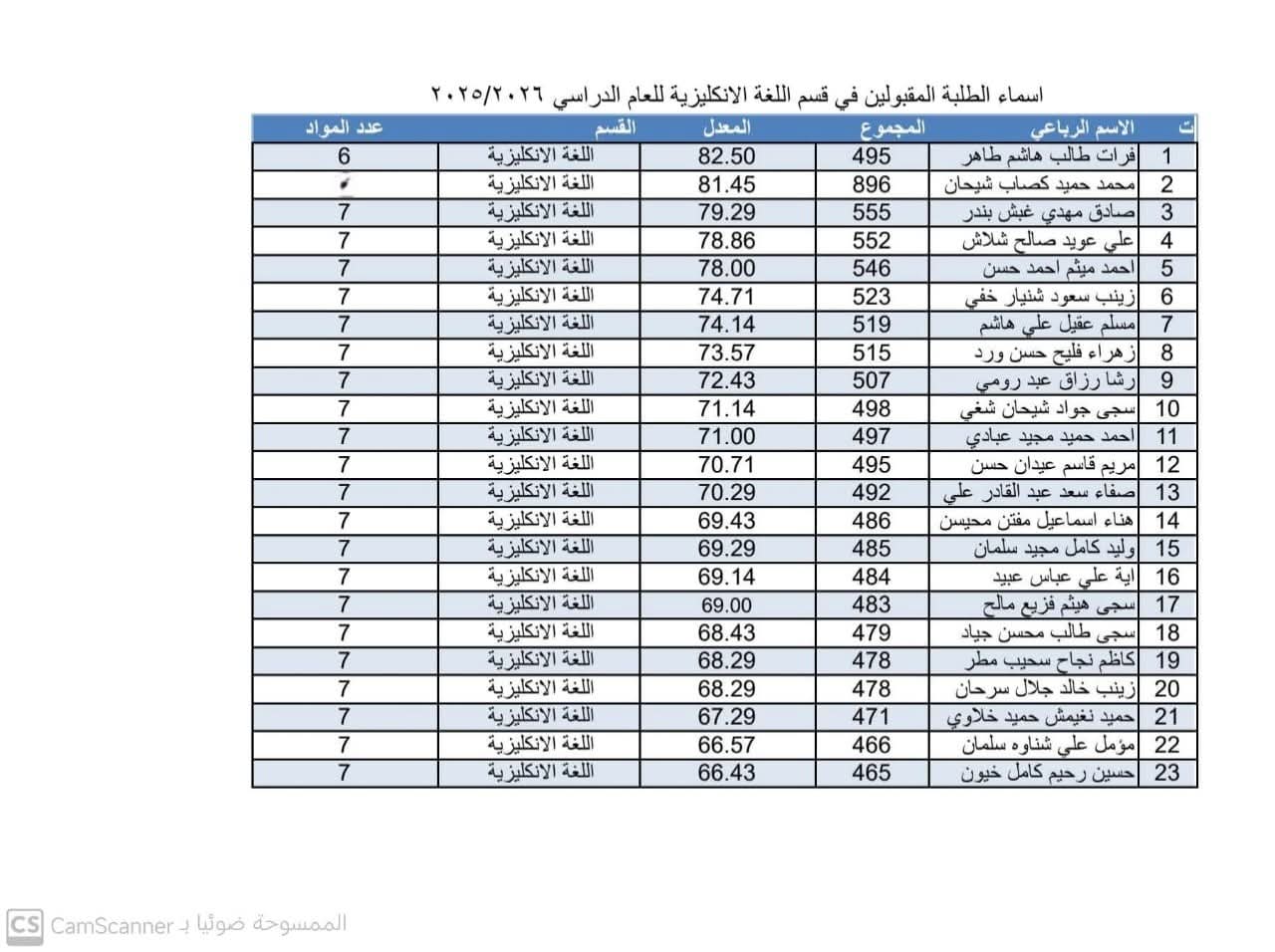 تُعلِن عمادة كلية التربية – الدواية / جامعة الشطرة عن إعلان أسماء الطلبة المقبولين في الدراسة المسائية للمرحلة الأولى للعام الدراسي 2025–2026 لقسمي اللغة الإنكليزية والفيزياء.