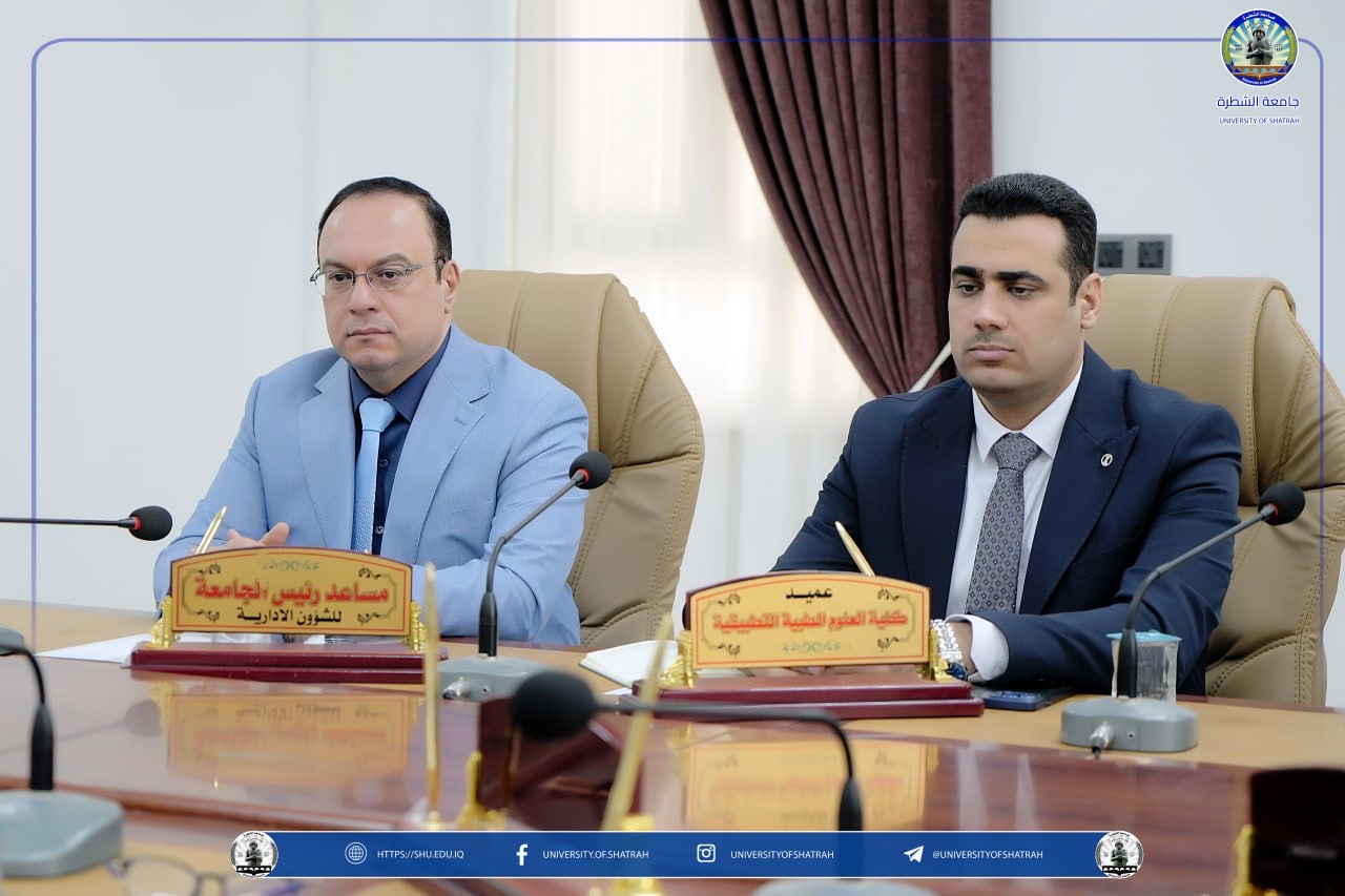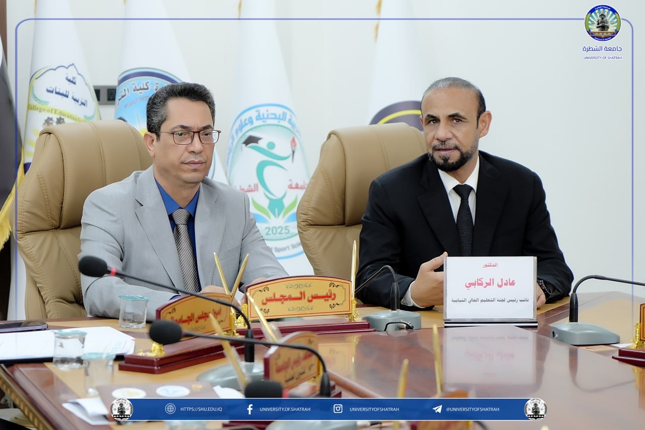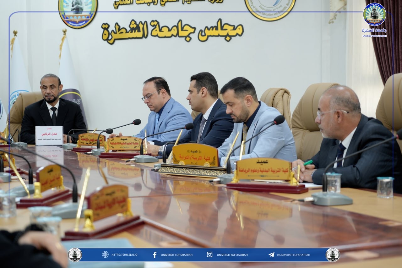 عقد مجلس جامعة الشطرة جلسته الثالثة للعام الدراسي 2025–2026 برئاسة الأستاذ الدكتور باسم عبد الحسين جار الله وبحضور أعضاء المجلس كافة اليوم الاثنين 27 تشرين الأول 2025، وشهدت الجلسة حضور نائب رئيس لجنة التعليم العالي و البحث العلمي البرلمانية الدكتور عادل الركابي، وذلك في إطار تعزيز التعاون بين الجامعة والمؤسسة التشريعية بما يخدم مسيرة التعليم العالي في العراق.
