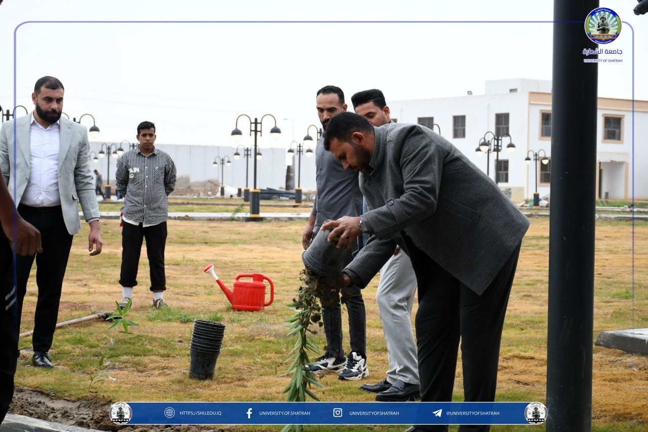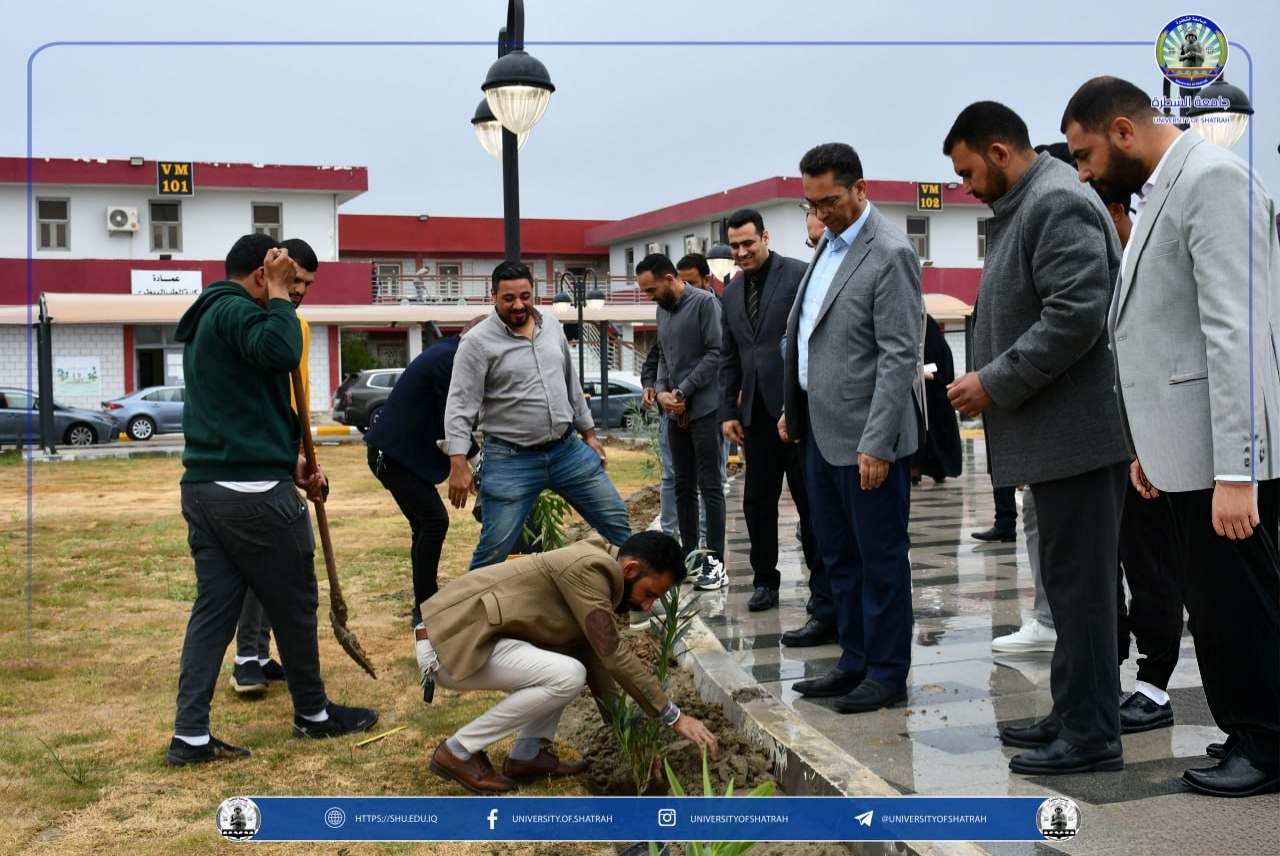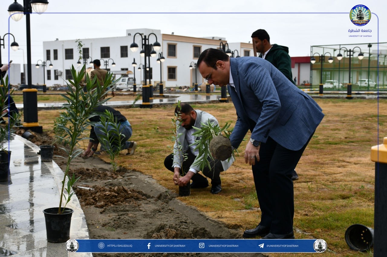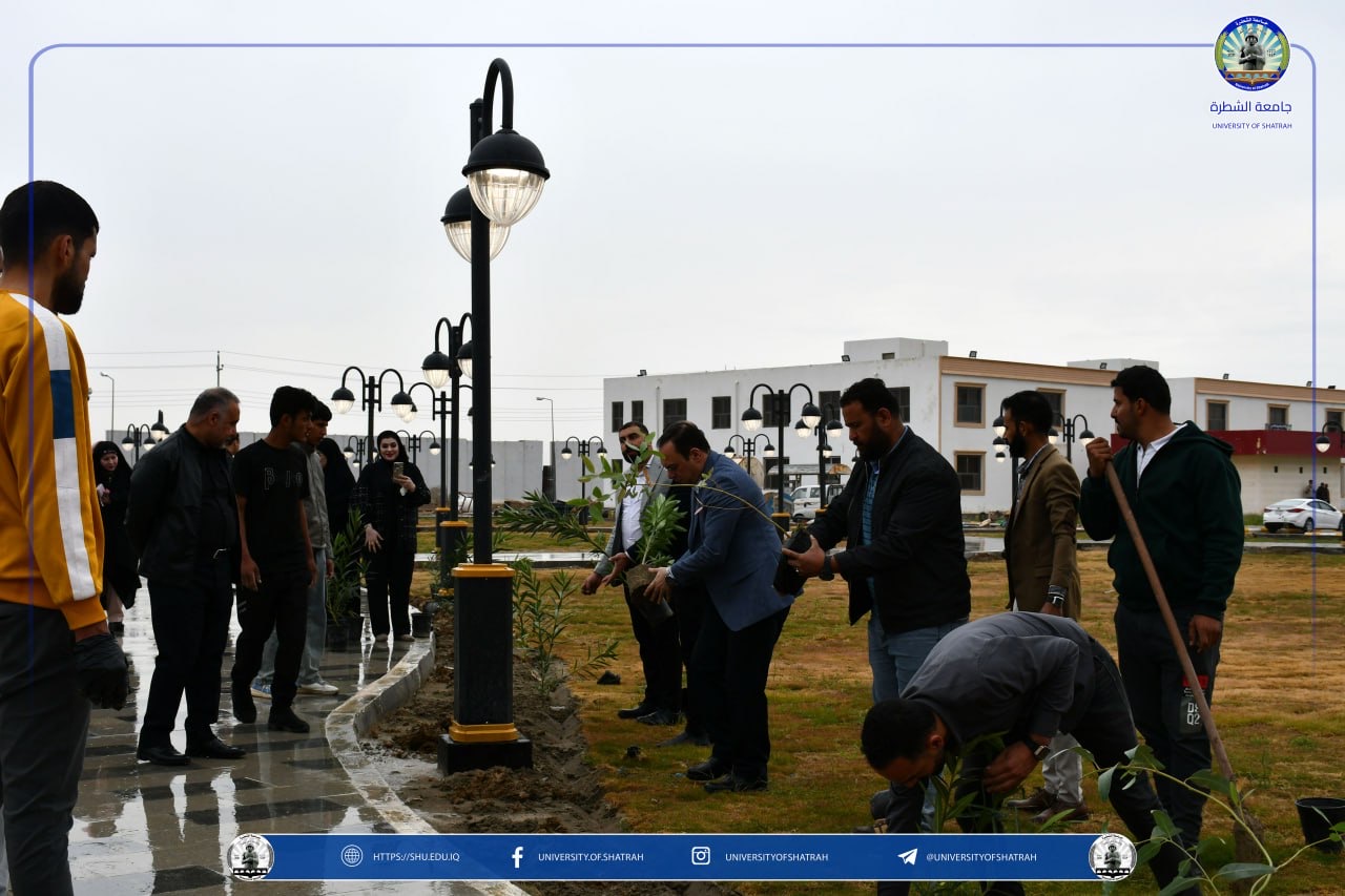 برعاية السيد رئيس جامعة الشطرة الأستاذ الدكتور باسم عبد الحسين جارالله الغزي واستنادًا لتوجيهات وزارة التعليم العالي والبحث العلمي نظّم قسم شؤون الديوان في رئاسة الجامعة حملة تشجير واسعة في حدائق الجامعة فضلاً عن ندوة علمية بعنوان " البيئة الخضراء وعلاقتها في المستوى الدراسي " يوم الخميس 12 آذار 2026، بمناسبة اليوم الوطني للتشجير.