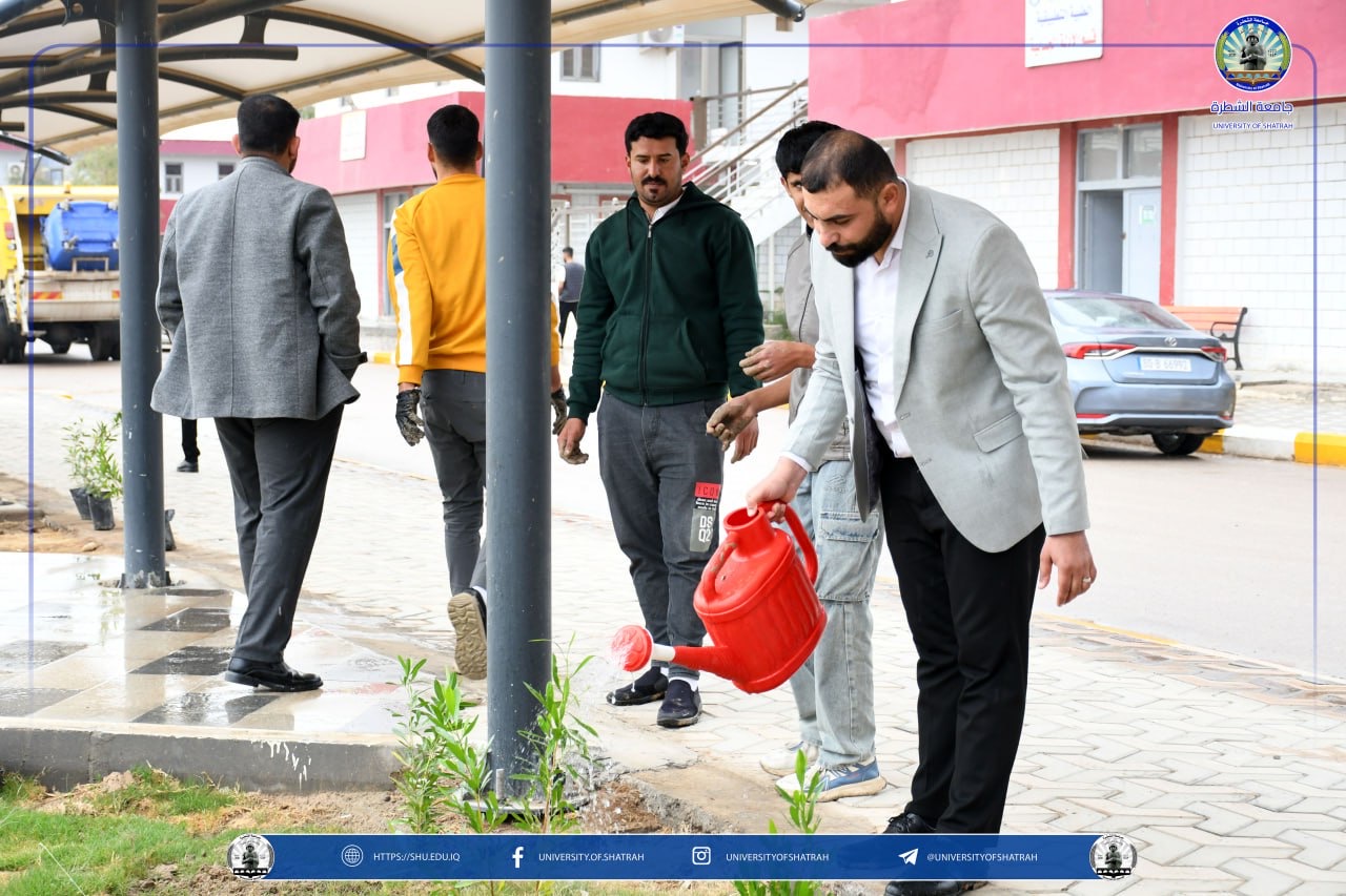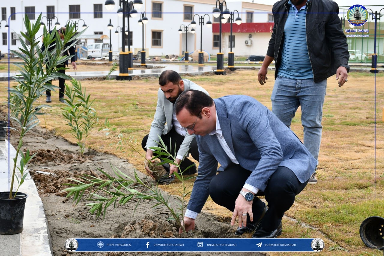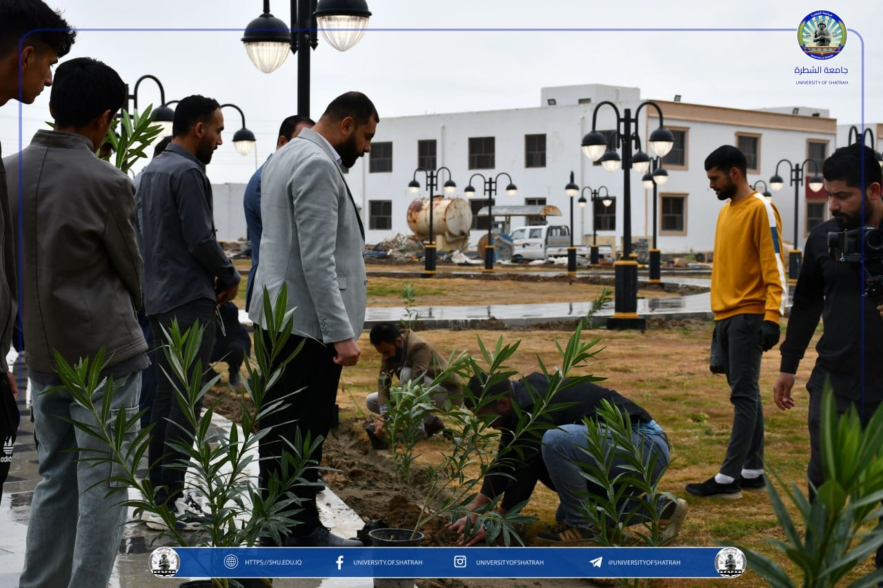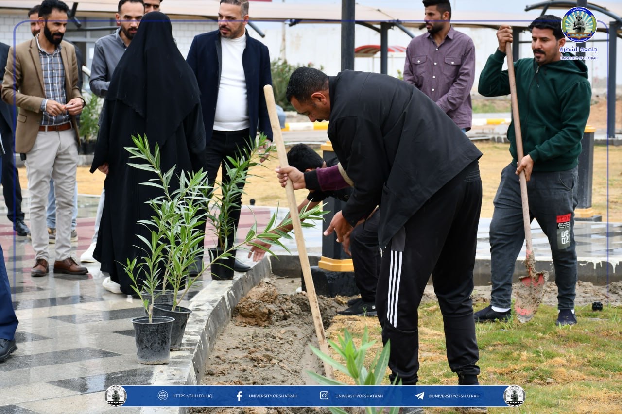 برعاية السيد رئيس جامعة الشطرة الأستاذ الدكتور باسم عبد الحسين جارالله الغزي واستنادًا لتوجيهات وزارة التعليم العالي والبحث العلمي نظّم قسم شؤون الديوان في رئاسة الجامعة حملة تشجير واسعة في حدائق الجامعة فضلاً عن ندوة علمية بعنوان " البيئة الخضراء وعلاقتها في المستوى الدراسي " يوم الخميس 12 آذار 2026، بمناسبة اليوم الوطني للتشجير.