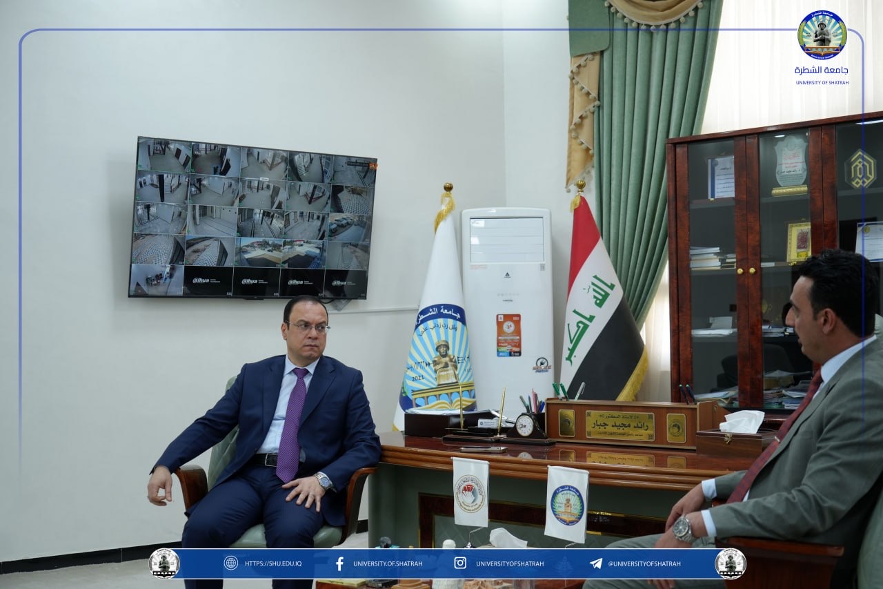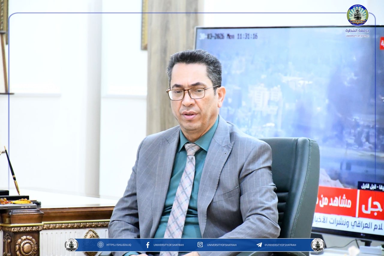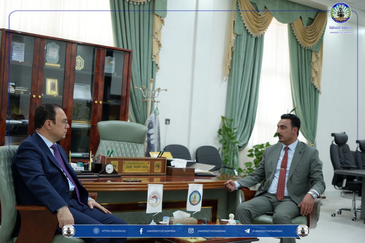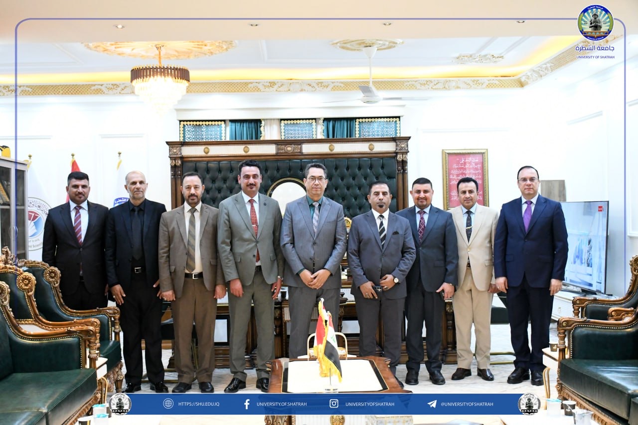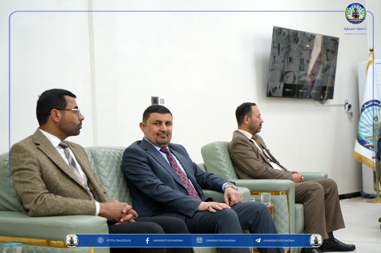 استقبل رئيس جامعة الشطرة الأستاذ الدكتور باسم عبدالحسين جارالله وفد كلية الإمام الكاظم (عليه السلام) للعلوم الإسلامية – أقسام ذي قار برئاسة معاون عميد أ.م.د باسم عبد الجليل جراد الفضلي، في زيارة رسمية في مكتبه اليوم الاثنين 30 آذار 2026، بحضور السيد المساعد الإداري الأستاذ الدكتور رائد مجيد جبار.