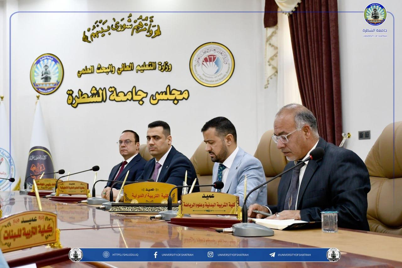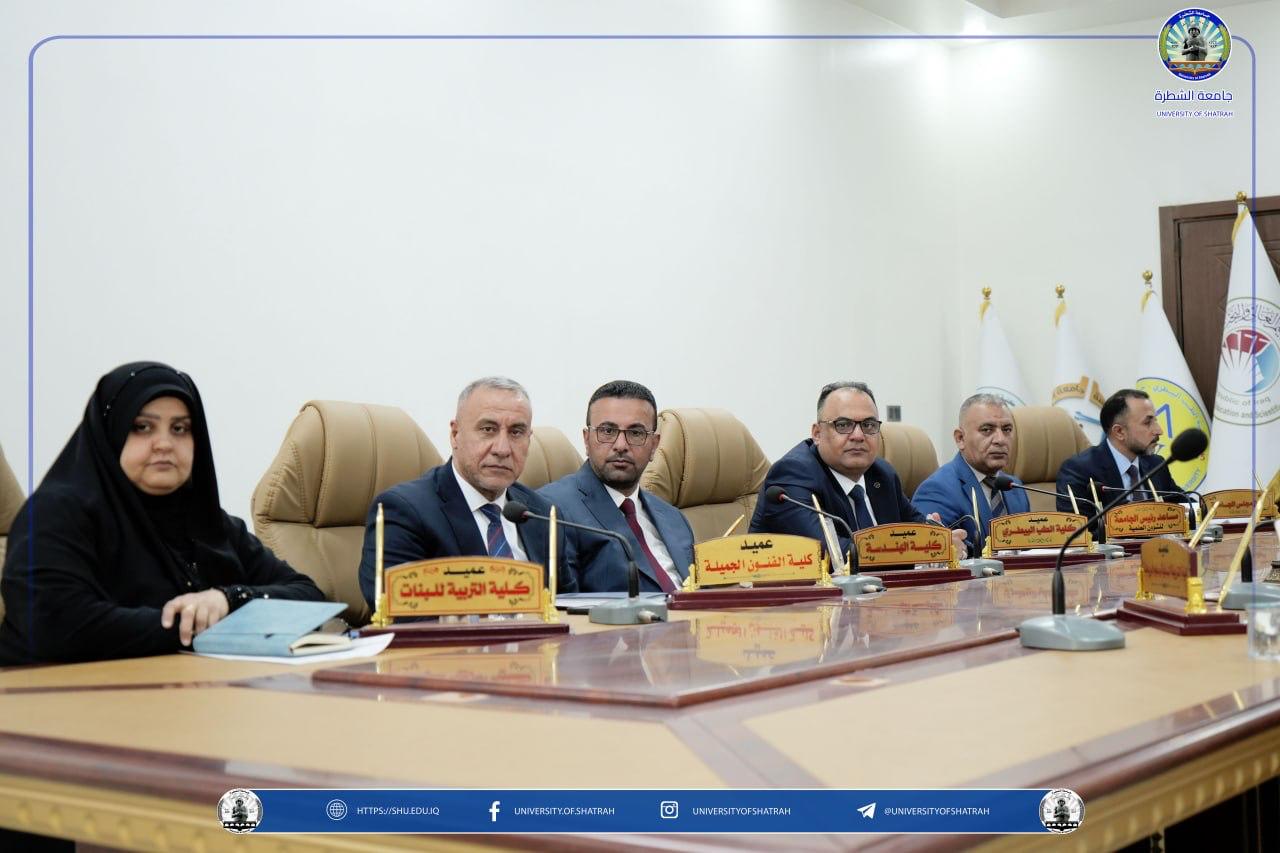 ويأتي انعقاد هذه الجلسة ضمن جهود مجلس جامعة الشطرة المستمرة للارتقاء بالواقع الأكاديمي والإداري، والمضي قدمًا في تحقيق أهداف الجامعة في مجالات التعليم والبحث العلمي وخدمة المجتمع.